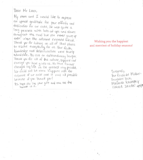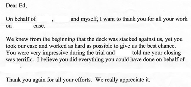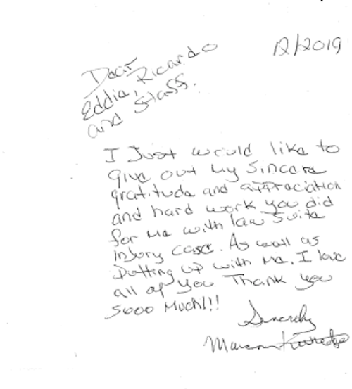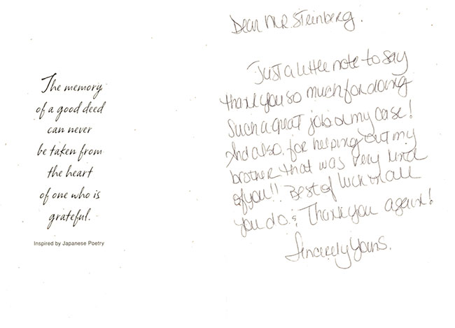 A Thank You Letter From a Client Whose Case Is Still Ongoing